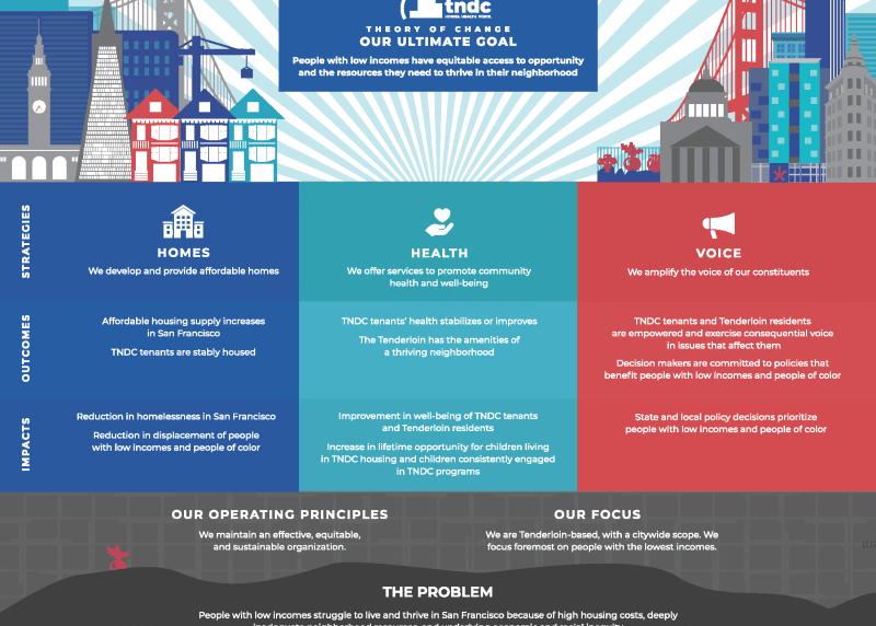 TNDC develops community and provides affordable housing and services for people with low incomes in the Tenderloin and throughout San Francisco, to promote equitable access to opportunity and resources.
